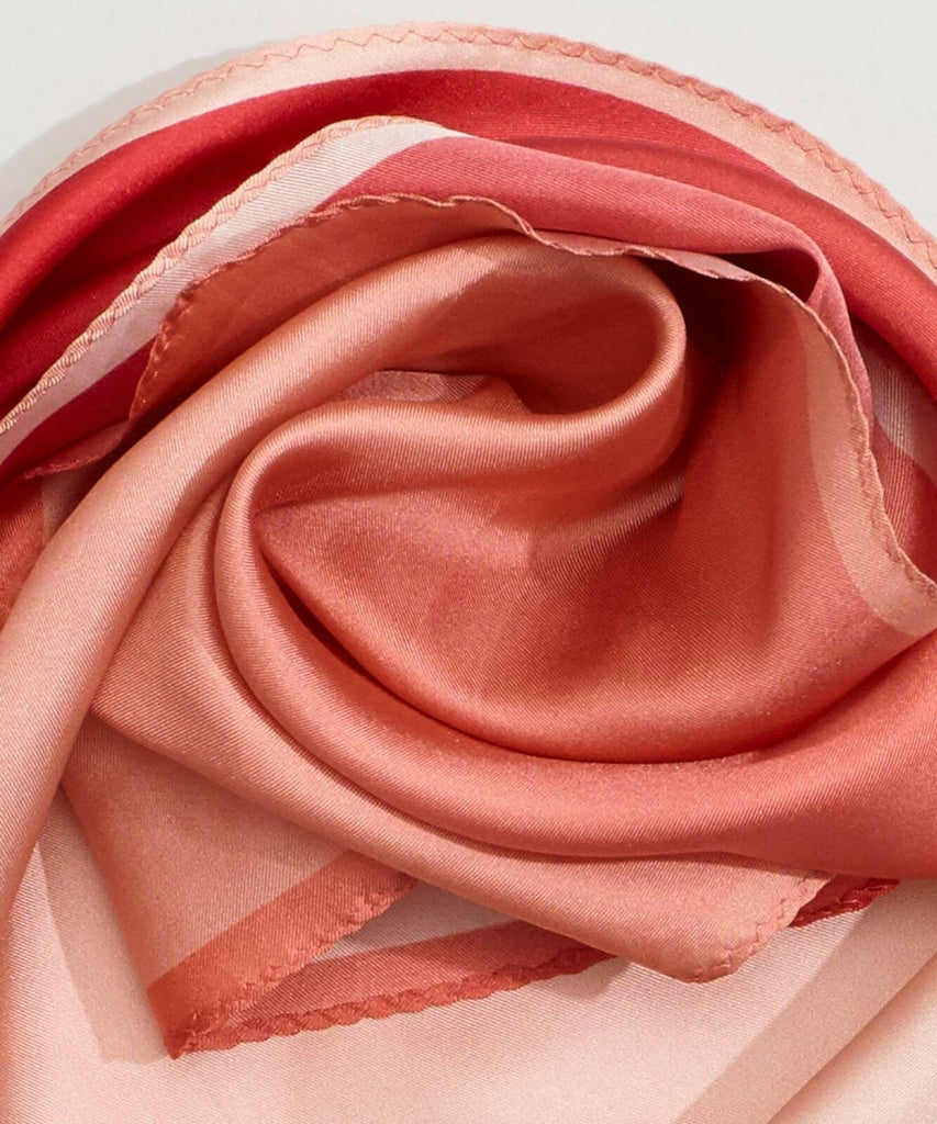 Bring the elevated and minimalistic style of the Echo Ombre Silk Diamond Shaped Scarf to your look. Silk diamond scarf features a gradient design with border detailing.