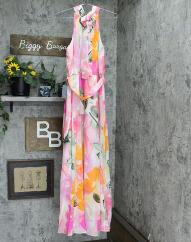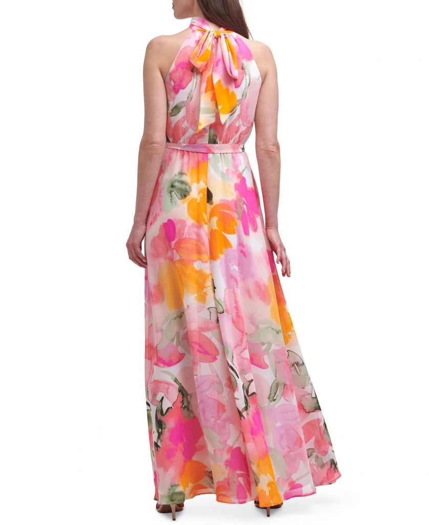 Make the best-dressed list with this flowing maxi-style Eliza J gown styled with an elegant halter neckline and beautiful floral print. Model is wearing a size 6