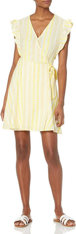 ella moss Women's Apparel Jessie side tie wrap dress with flutter short sleeves, V-neckline and finished hem on a flowey loose fit above the knee length body. This cute ladies mini length dress is a ready to go outfit for anywhere at any time made in great comfortable fabric to keep you in style all day long. Pairs great with all footwear from trendy heels or boots to your favorite flats and can be worn with all accessories as well as a jacket. Perfect for the work, attending a class or traveling the world as it makes a great additional to any wardrobe. Ella Moss is a purist denim brand inspired by art, culture and travel; celebrating and embracing life's experiences. Inspired by music, art, and travel, Ella Moss is a collection for the modern bohemian. Every garment is crafted with a thoughtfulness and the understanding that the Ella Moss woman loves her clothes, but more importantly, loves the life she lives in them