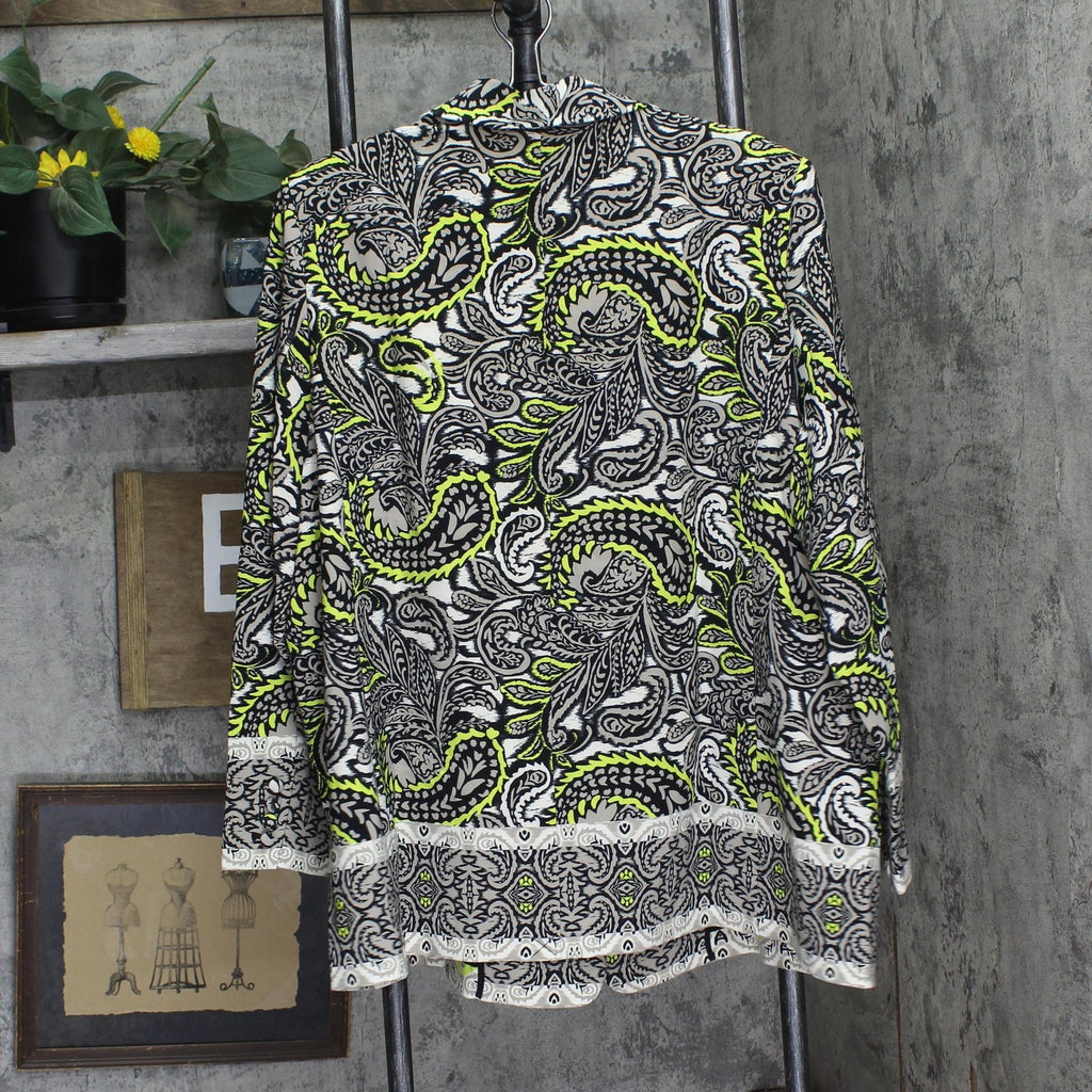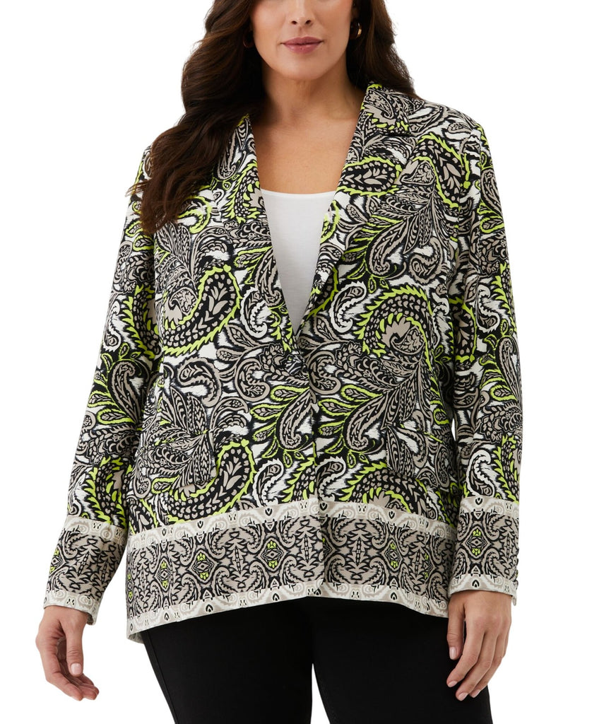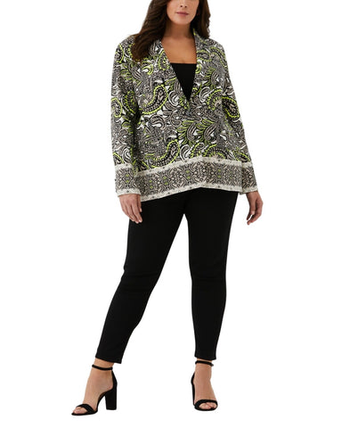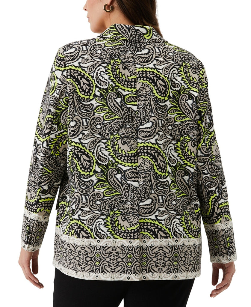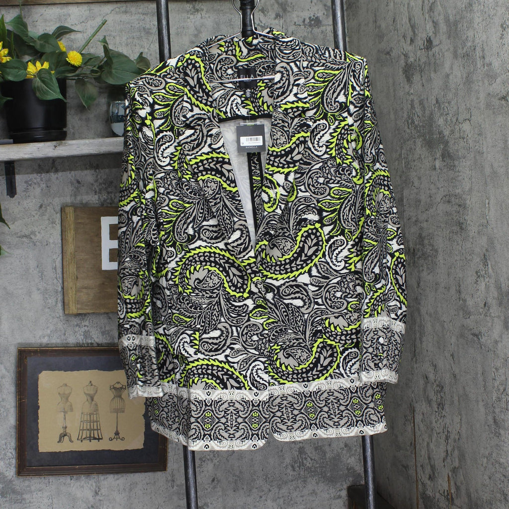 ELLA Rafaella Size Unlined Paisley Print Blazer Jacket String Black Multi 3X