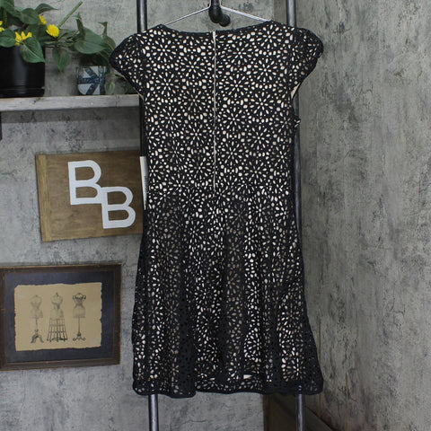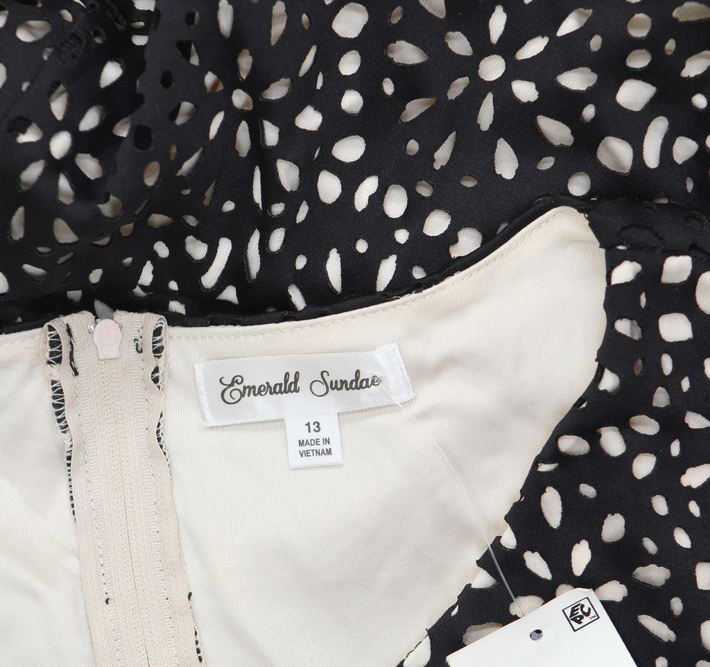 Emerald Sundae Juniors Laser Cut Lined Fit Flare Cap Sleeve Dress Black 13