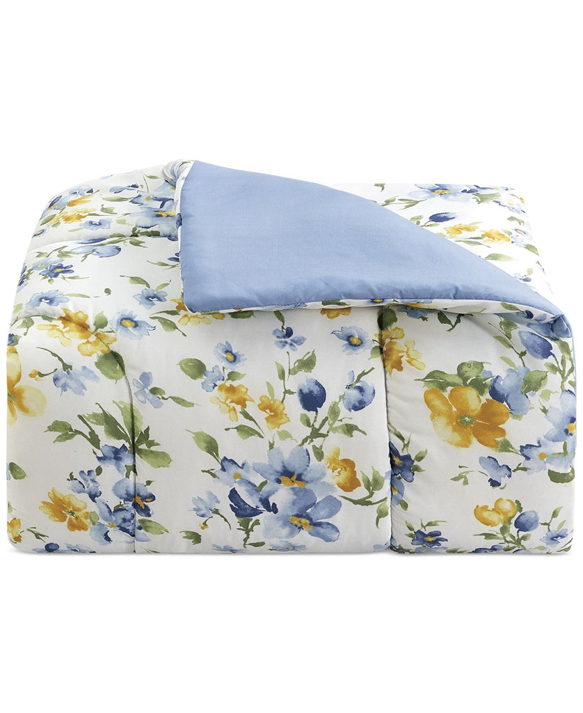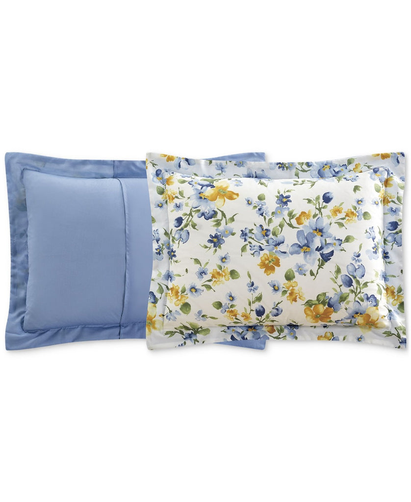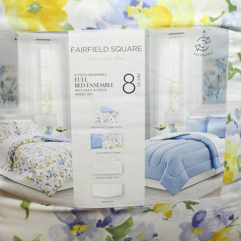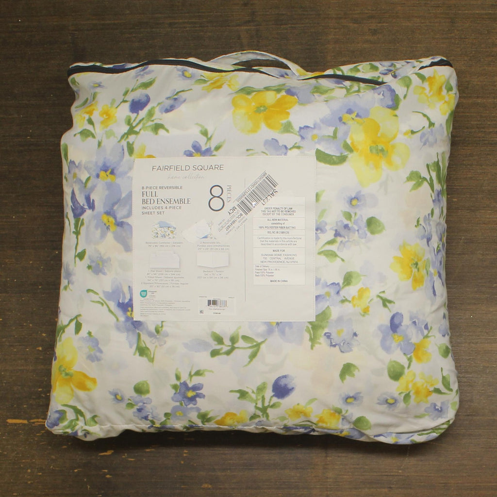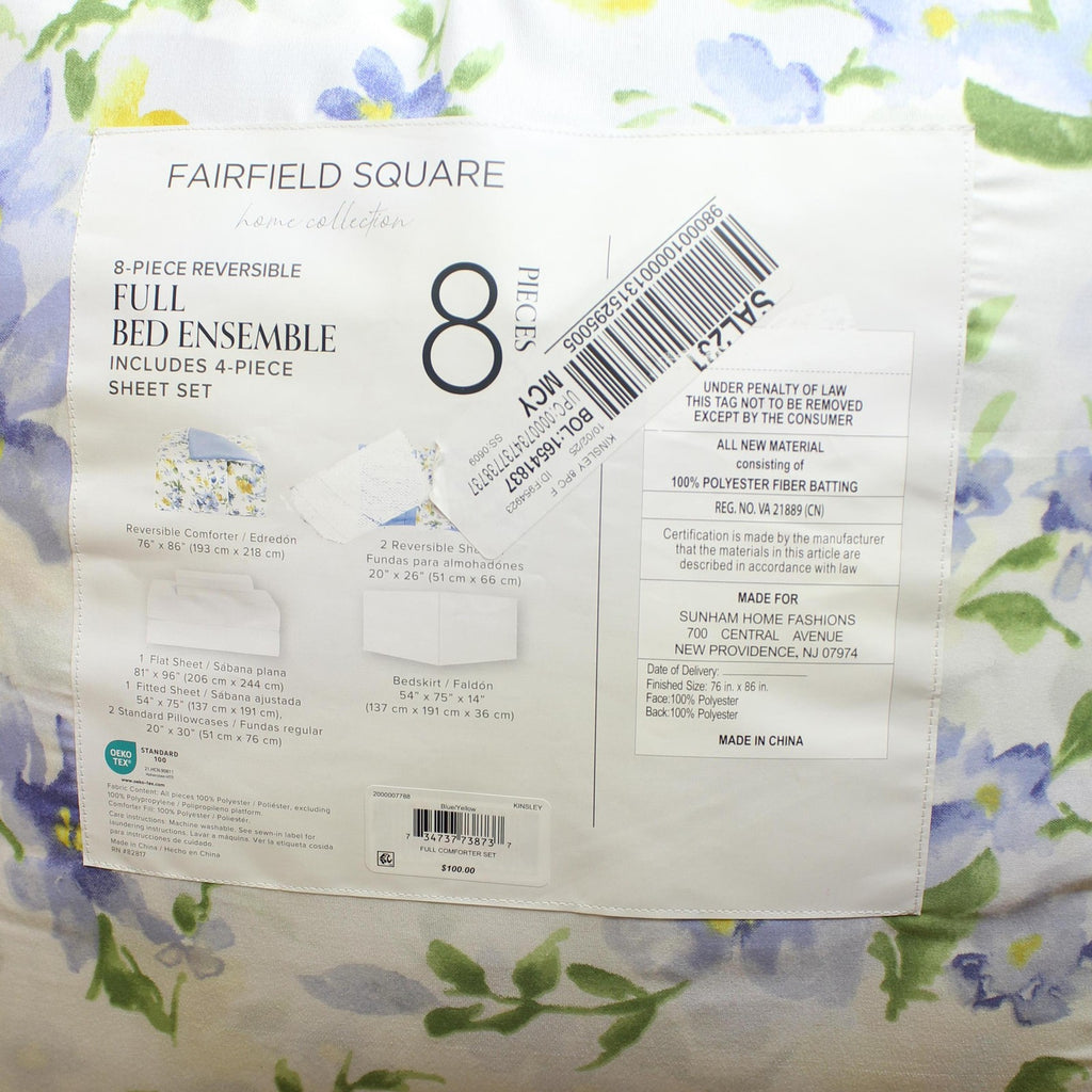 Get everything you need to refresh your decor with this Kinsley comforter set from . The eight pieces include a reversible comforter, shams and sheet set in fun florals. Features Sets include comforter, two coordinating shams, flat sheet, fitted sheet, two pillowcases and bed skirt Approx. dimensions: Twin: comforter 66" x 86", one standard sham 20" x 26", bedskirt 39" x 54"x 14", flat sheet 68" x 96", fitted sheet 39" x 75" x 12.25", pillowcase 20" x 30" Full: 76" x 86" comforter, 20" x 26" shams, 54" x 75" x 14" skirt, 81" x 96" flat sheet, 54" x 75" x 12.25" fitted sheet, 20" x 30" pillowcase Queen: 88" x 88" comforter, 20" x 26" sham, 60" x 80" x 14" skirt, 90" x 102" flat sheet, 60" x 80" x 12.25" fitted sheet, 20" x 30" pillowcase King: 106" x 88" comforter, 20" x 36" sham, 78" x 80" x 14" skirt, 108" x 102" flat sheet, 78" x 80" x 12.25" fitted sheet, 20" x 40" pillowcase California King: 106" x 88" comforter, 20" x 36" sham, 72" x 84" x 14" skirt, 108" x 102" flat sheet, 72" x 84" x 12.25" fitted sheet, 20" x 40" pillowcase OEKO-TEX STANDARD 100 certified. Tested in an independent lab and verified to be safe from over 1,000 harmful substances [SH025 218781 | Testex] Asian American & Pacific Islander Owned Polyester Machine wash Imported