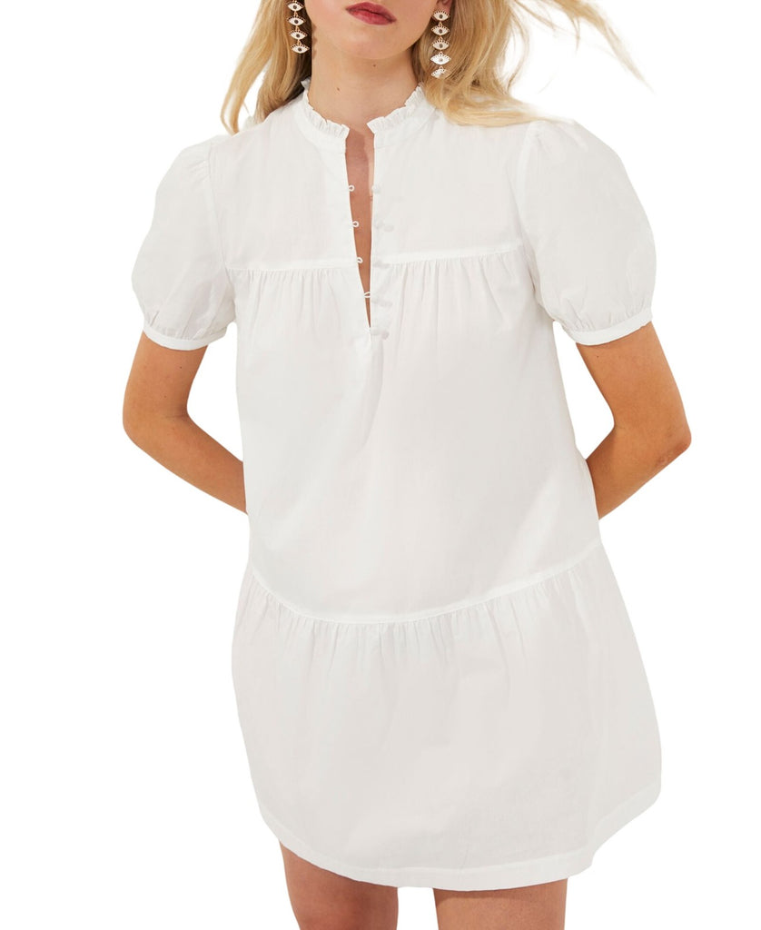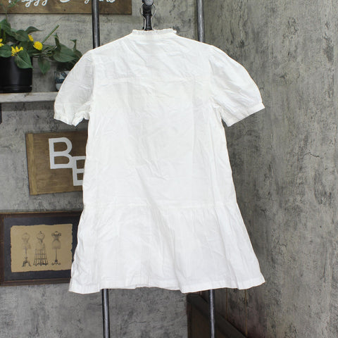 A dropped waistline and airy silhouette lend breezy romance to this short-sleeve shirtdress made from lightweight organic cotton. Mock neck Short sleeves Partially lined 100% organic cotton Hand wash, dry flat Imported