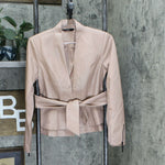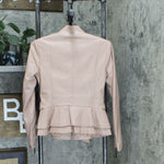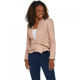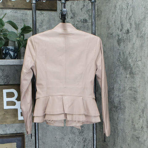 When your look needs a little polish, this tie-front faux-leather jacket with trend-right double-tiered peplum makes you shine.