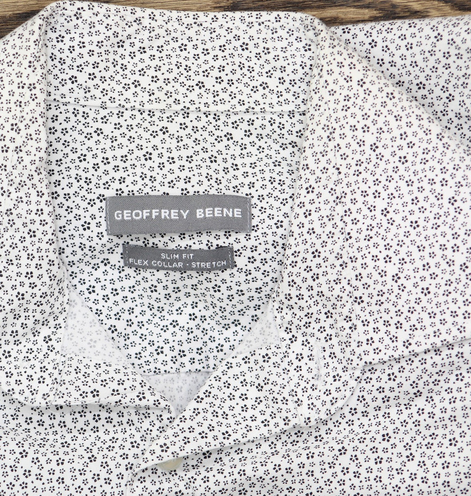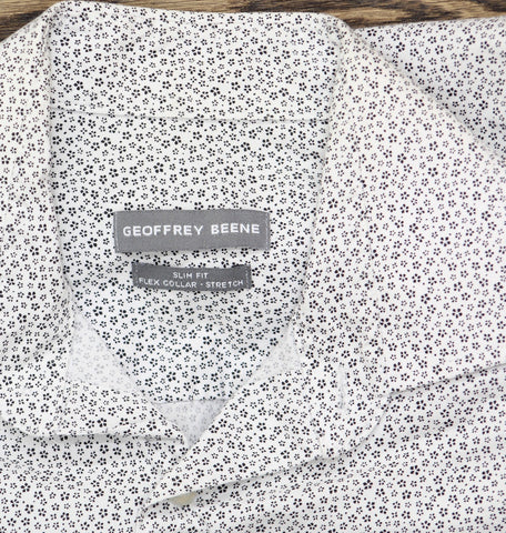 Impress in this Geoffrey Beene dress shirt. Featuring a slim fit, this men's dress shirt from Geoffrey Beene adds standout style to your professional attire. Stretch fabric delivers all-day comfort.Impress in this Geoffrey Beene dress shirt. Featuring a slim fit, this men's dress shirt from Geoffrey Beene adds standout style to your professional attire. Stretch fabric delivers all-day comfort.Flexible collar stretches one half-inch for comfortable wearStretch fabric blend allows comfortable movementSpread collar flares to accommodate wider tie knotsButton frontLong sleevesFIT & SIZINGSlim fit features high arm holes, slightly narrow straight body and tapered sleeve openingsFABRIC & CARECotton, polyester, elastaneMachine washImported