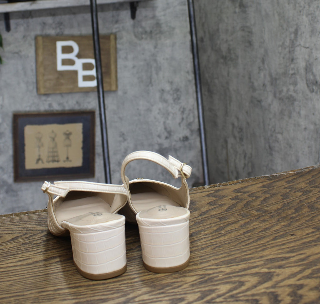 1-1/4" platform Pointed toe Cushioned insole, arch support, memory foam and lightweight design for added comfort Detailing at vamp Imported