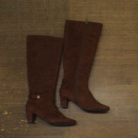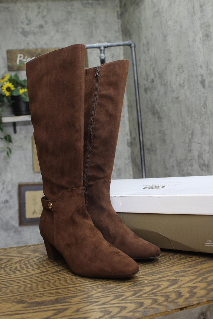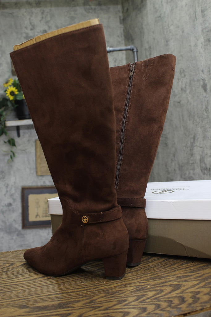 Paired with tailored skirts or skinny jeans, the Giani Bernini Crissalyn boots are the perfect addition to changing seasons looks. Features Block heel: 2" Shaft height: 12"; Circumference: 9-3/4"; measured on a regular-calf boot Square toe Functional inside zipper closure Cushioned insole for added comfort Hardware detailing at ankle Exclusive Upper: polyurethane, manmade; lining: 100% fabric; sole: 100% rubber Imported