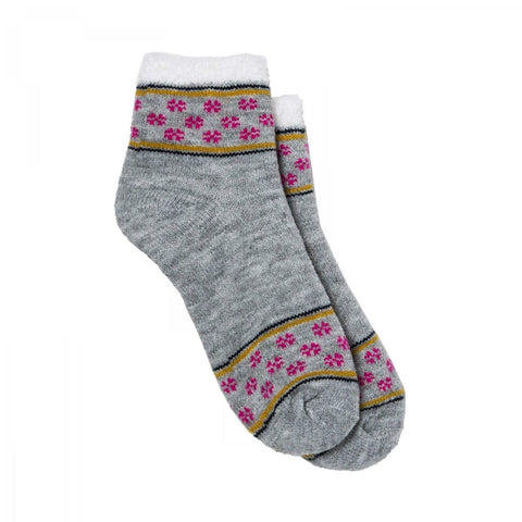 Give your sock draw a touch of flair with the Fair Isle Double-Lined Cozy Ankle Socks from Gilligan & O'Malley. You'll love the sweet look of a Fair Isle pattern around the ankle for a hint of winter charm, while an acrylic blend makes up the lining for total comfort. The ankle style brings a little bit of extra coverage for warmth, and all you need with these socks are your favorite PJs and a mug of hot cocoa.