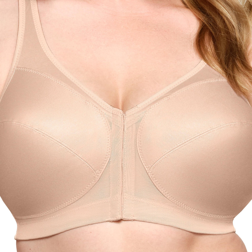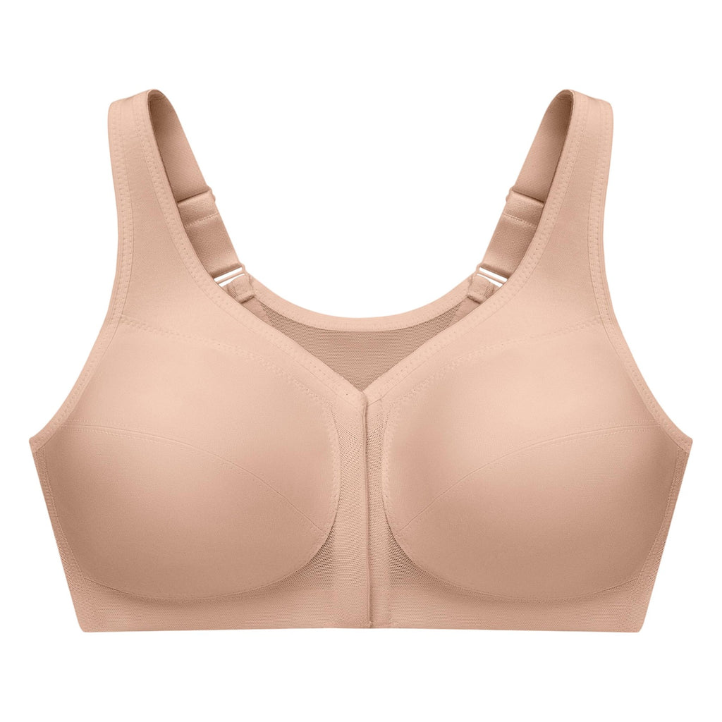 MAGICLIFT TECHNOLOGY: A cushioned band lifts, shapes, and supports without a wire. POSTURE BACK: Crisscrossed design pulls your shoulders back to improve your posture. FRONT CLOSURE: Hook-and-eye closure with 2 columns & 5 rows increases with size. CUSTOM FIT: Wide, cushioned straps adjust to your fit. DESIGNED IN NEW YORK SINCE 1921: We have over 100 years experience crafting bras for curvy women.