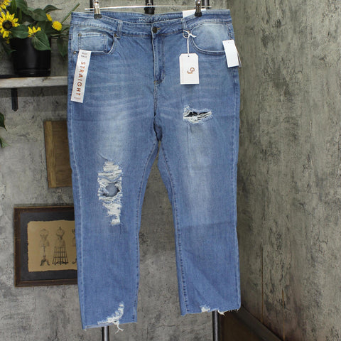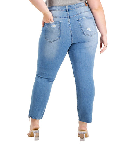 Mix things up with these plus size jeans from Gogo Jeans, a straight-leg pair that come to life with rips and frayed edges.