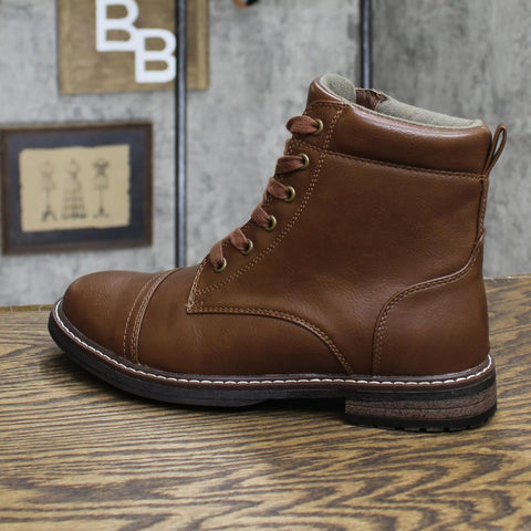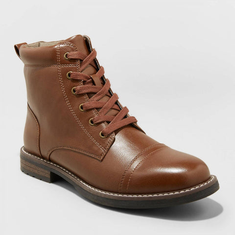 Add edge to your everyday look with these Jeffrey Cap Toe Combat Boots from Goodfellow and Co. These boots are designed with a solid-color textured upper to easily mix and match with most of your outfits. You'll keep comfy and step with confidence on the low block heel, while a lace-up design offers you a customized fit. Pair with anything from your go-to jeans-and-tee combo to chinos and a button down to elevate your everyday style.