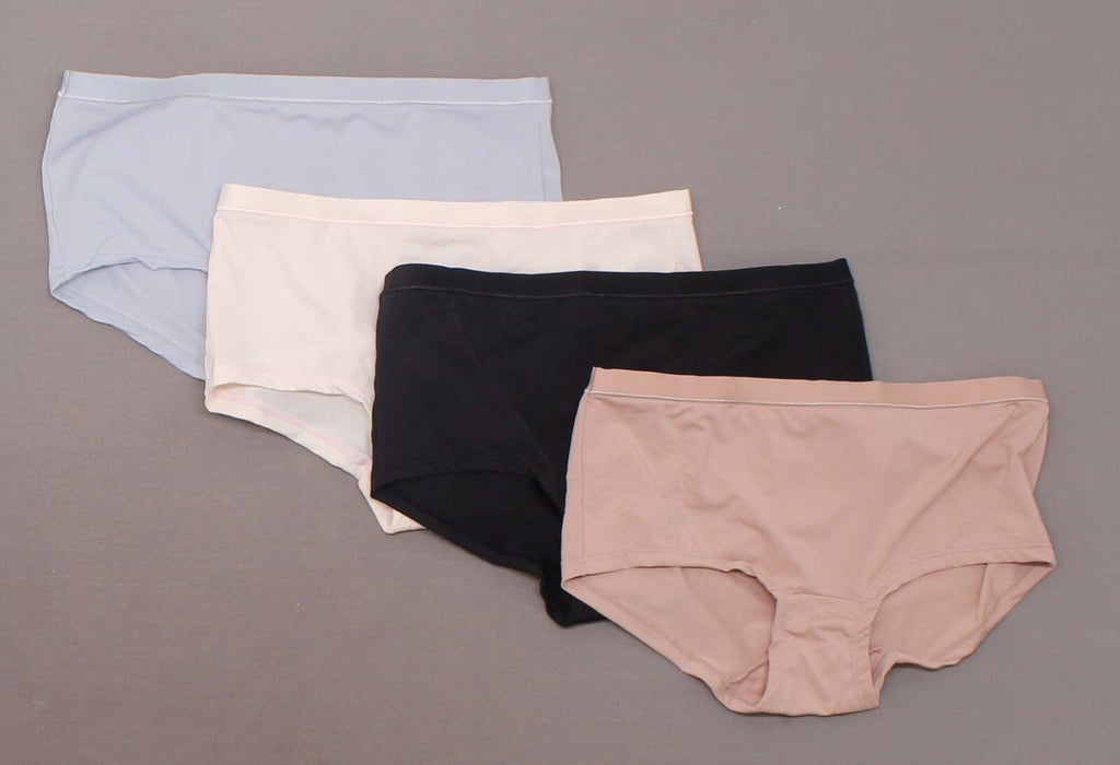 Nothing beats the super soft comfort of these Hanes Premium Women’s Microfiber with X-Temp Boyshorts. Indulgent to the touch, the stretchable microfiber fabric moves with you. The X-Temp technology adapts to your body temperature for all day comfort. Other comfort features include a tag-free label and smooth fabric covered waistband. The boyshort cut gives you a mid-rise, full coverage fit.