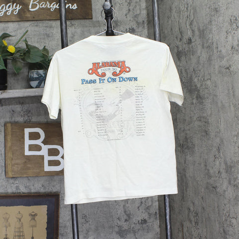 - Condition Description: There is patches of minor discoloration all over both sides of the piece. No holes or tearing. Product is single stitch.
