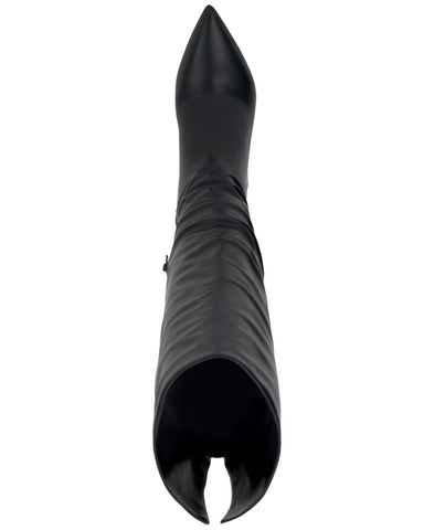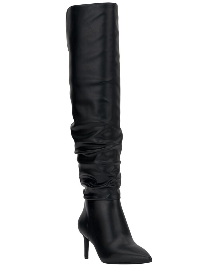 I.N.C. International Concepts slouches a striking over-the-knee profile over stiletto heels in the must-have Damoni boots. Features Stiletto heel: 2-1/2" Shaft height: 20"; circumference: 14-1/2"; measured on a regular-calf boot Pointed toe Functional inside zipper closure Slouching at shaft Note: Shaft height and circumference vary by size Exclusive Upper: fabric; lining: fabric, polyurethane; sole: manmade Imported