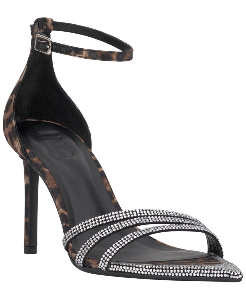 Open points pair with sparkling rhinestones and ankle straps for a gorgeous silhouette over stiletto heels in the striking Kadira sandals from I.N.C. International Concepts. Features Stiletto heel: 4" Pointed toe Buckled ankle strap Embellishments at straps Exclusive Upper: fabric or fabric, manmade; lining: manmade; sole: manmade Imported