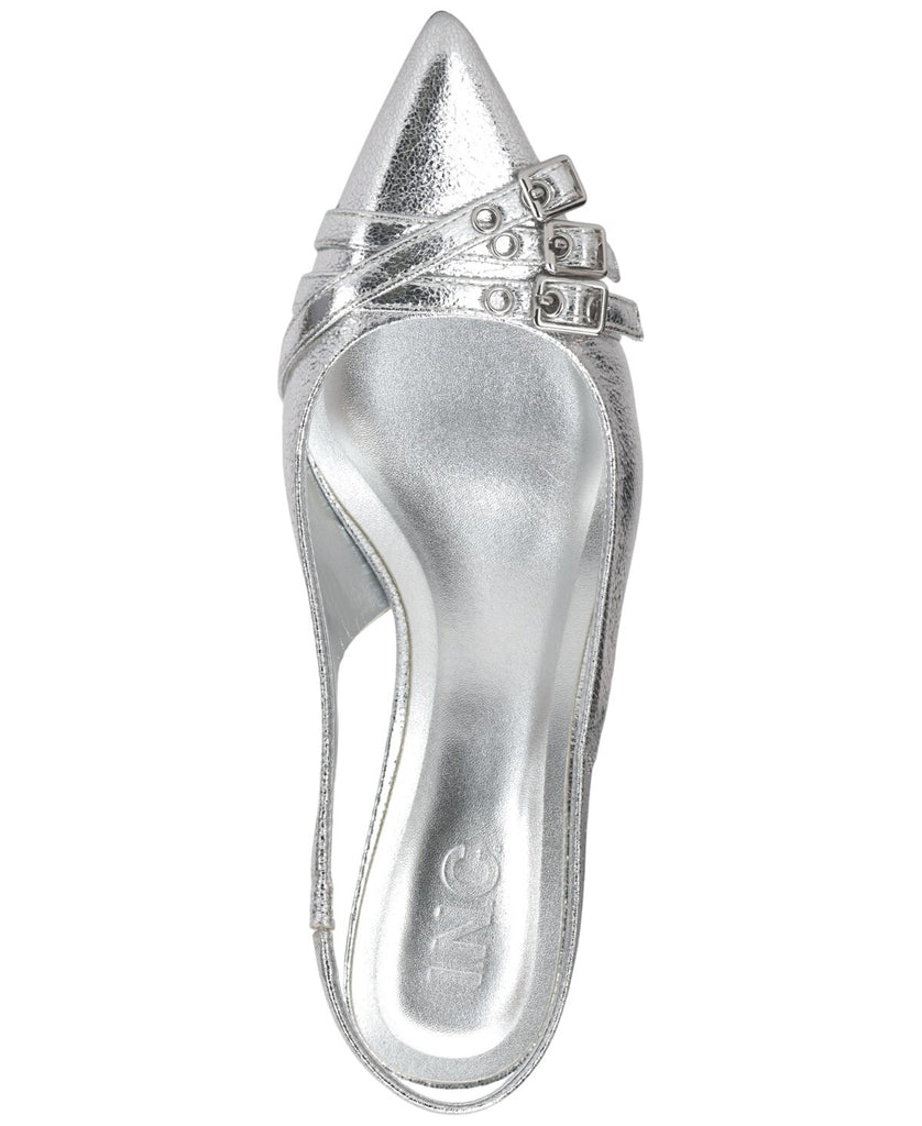 Heel height: 2 inches. Triple-strapped with a clever crisscross and bright buckled hardware, the Capeka slingback pumps deliver a stylish look from I.n.c. International Concepts.