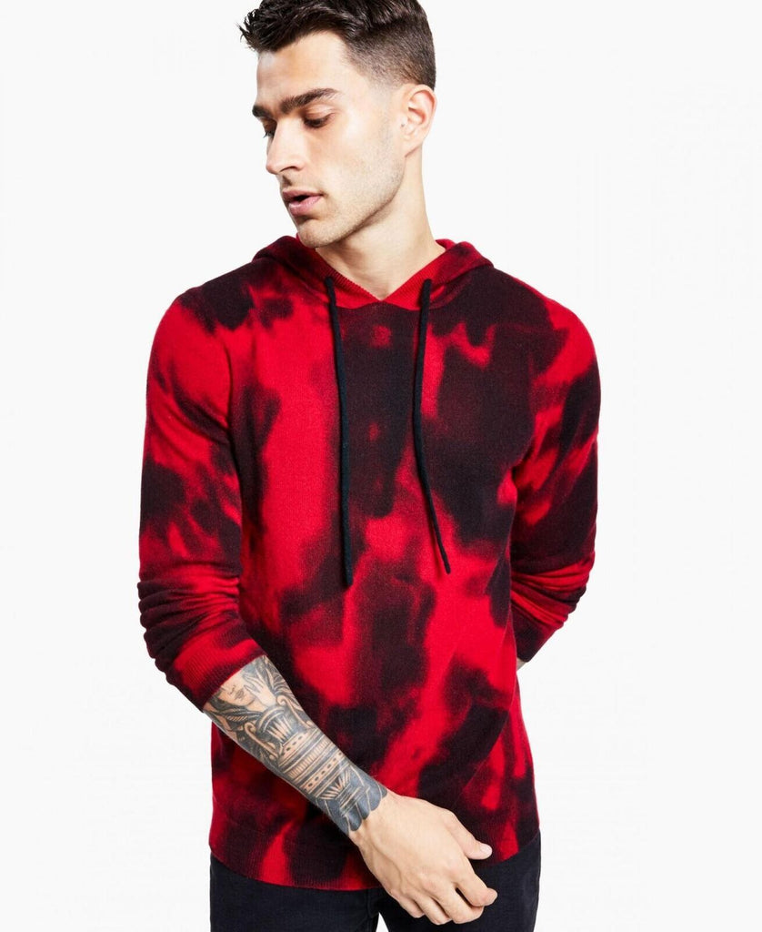 INC International Concepts delivers a cool piece for a laid-back look with this tie-dye hooded sweater. Regular fit