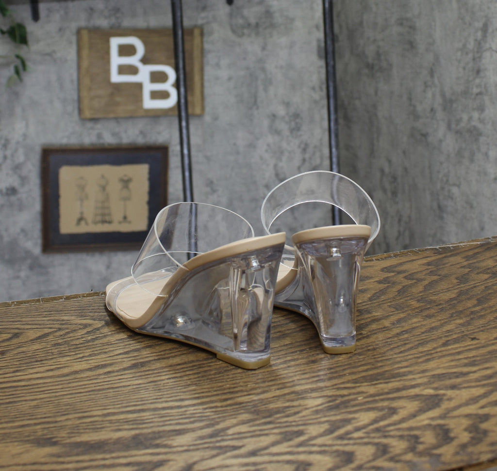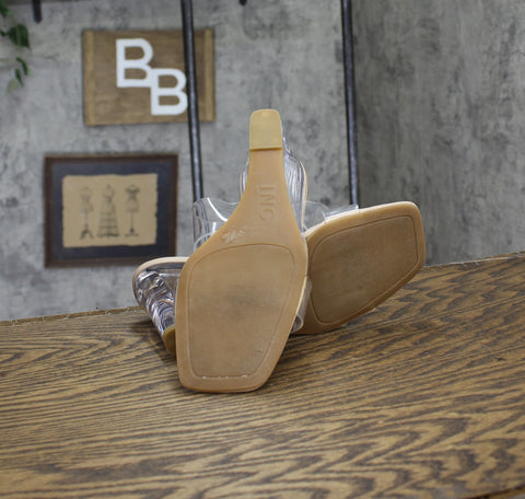 Barely there with a fashion-forward boost, the Eleste wedges from I.n.c. International Concepts top translucent heels with clear straps with gorgeous effect.