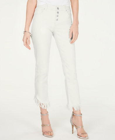 Denim with a little extra flare. Swishy fringe decorates the hem of I.N.C. International Concepts' playful jeans. Now just add a dramatic heel for maximum impact on the embellished jeans trend.
