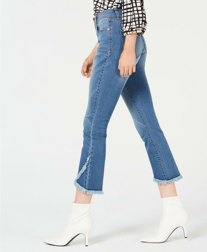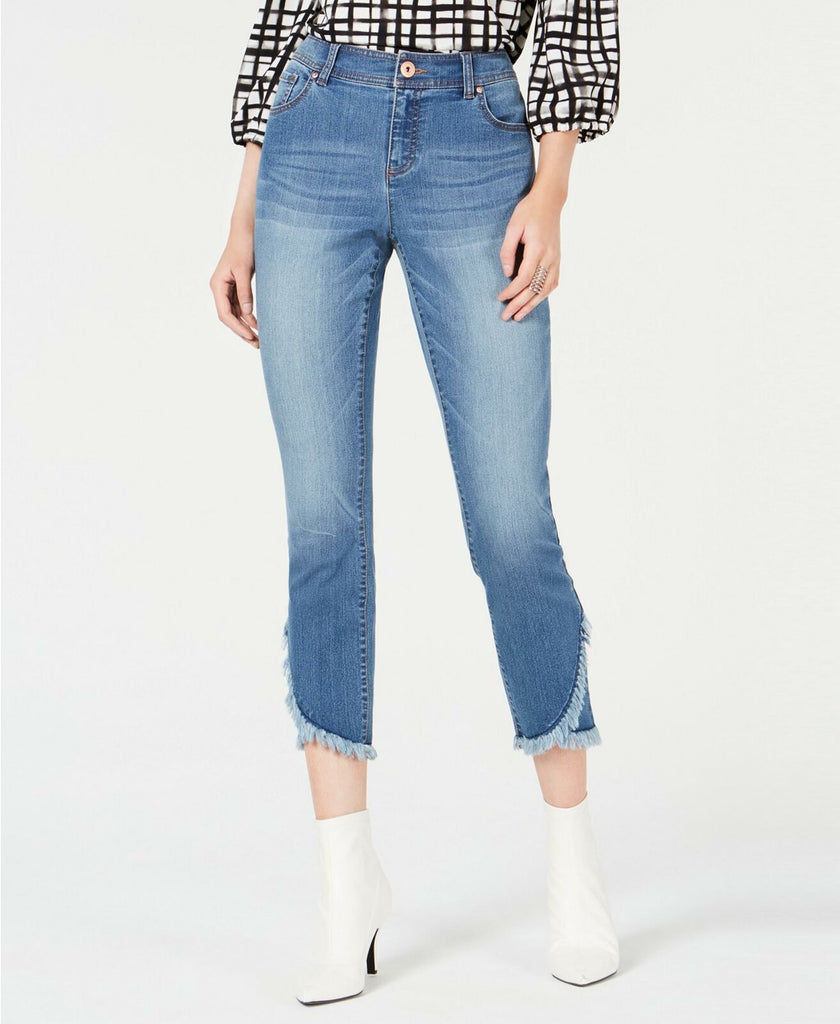 Revel in the unexpected: frayed, tulip-style cuffs add understated interest to the silhouette of I.N.C. International Concepts' skinny jeans.