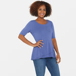 Flaunt this figure-flattering peplum top all year long! Boasting a feminine silhouette and elbow-length sleeves, it pairs perfectly with jeans, capris, and skirts to create an easy-to-wear ensemble. From Isaac Mizrahi Live!TM
