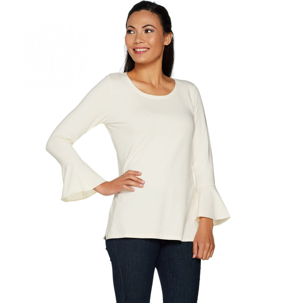 Playful, ruffled sleeves make a fashionable, fun addition to this scoop-neck top. From Isaac Mizrahi Live!(TM).