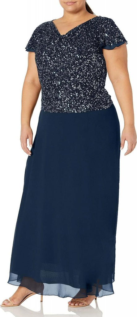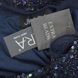 J Kara Womens Petite Long Beaded Cowl Neck Flutter Sleeve Gown Dress Blue 8P