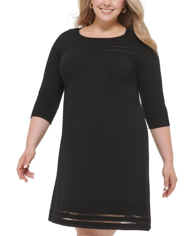 The sleek lines of Jessica Howard's career-oriented plus size sweater dress are accented by ribbing, pointelle detailing and illusion hemline trim.