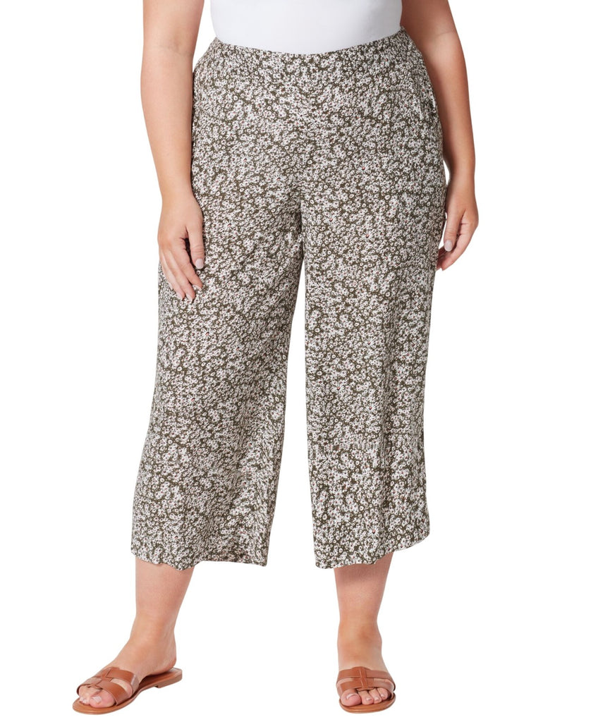 Style comes easy to these plus size soft pants from Jessica Simpson, featuring a trendy wide leg, flattering high waist and beautiful print.