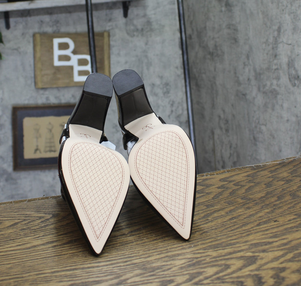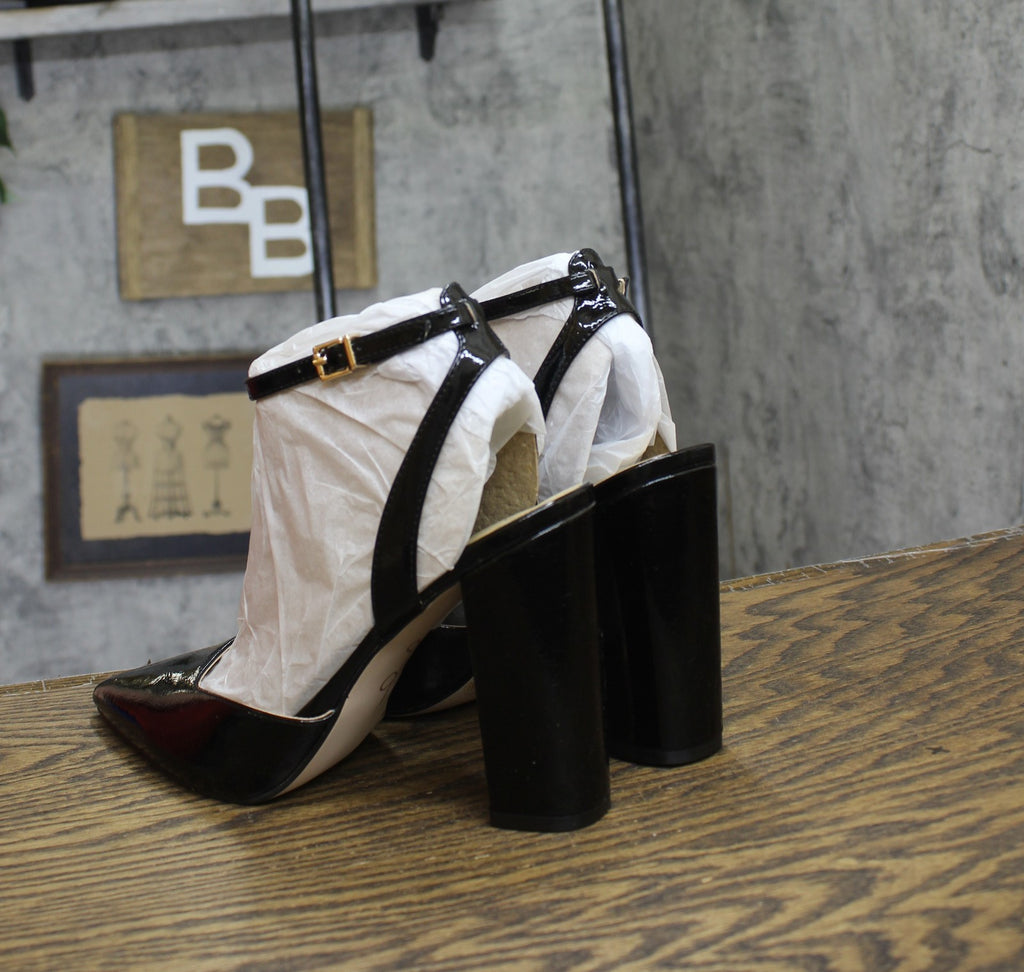 A block heel and pointed toe complement your favorite dressy looks when you wear the Nazela pumps from Jessica Simpson. Features 4" block heel Pointed toe Adjustable ankle buckle closure Man-made upper and lining; rubber sole Imported
