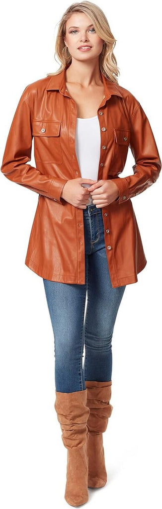 Jessica Simpson Women's Apparel; Paula Belted long sleeve Shacket (shirt-jacket) a modern day twist to light weight casual outerwear. This button down front shirt-jacket with clollared neck and functional chest pockets is great to wear over any top/bottom combination as well as jumpers and dresses. Great for work with slacks, to a class with jeans or running around town with jeggings. Ideal light weight travel atire. - Jessica Simpson is an iconic American brand, offering fashion forward product with a compelling price value. The brand encompasses jeans wear, sportswear, active, tween and toddlers. Her customer is unafraid of making a fashion statement, and has the ability to be sophisticated yet care-free. She has a flair of femininity and bohemian style. She loves color, bold patterns and shine. Her wardrobe revolves around denim layered with the must have statement pieces
