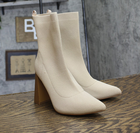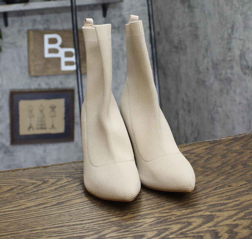 Heel Height:3 3/4-inch. Heel Type: Stacked. Platform Height:Flat-inch. Shaft Height:6 1/2 inches. Top Circumference:10 inches. Shoe Width: Wide. Closure Type: Pull-on. Toe Style: Pointed. Lining: Fabric. Upper Material: Fabric. Outersole Material: Man-made. Footbed: 4 MM Tru Comfort Foam. All measurements are approximate and were taken using a size 6. Please note measurements may vary slightly by size.