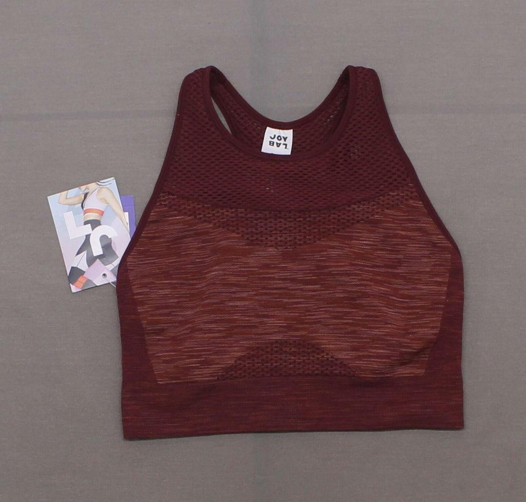 For a casual-cute athleisure look that's made to go where you go, begin with the Seamless High-Neck Sports Bra from JoyLab. This printed sports bra features a longline fit that offers extra coverage and easy layering underneath your favorite tees, tanks, sweatshirts and outerwear, and the low-impact design makes it perfect for wearing during a range of activities. The seamless construction lets you comfortably transition your look from working out to hanging out and beyond, and perforated mesh detailing on both the neckline and back lends extra breathability to keep up with your fitness routine. Pair with the coordinating JoyLab leggings or mix and match with other items in your closet to take your look from running laps to running this place with ease.