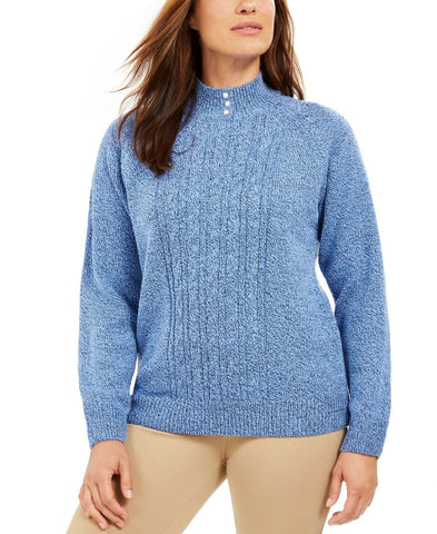 Imitation-pearl buttons at the neckline make this petite cable-knit sweater from Karen Scott extra sweet.