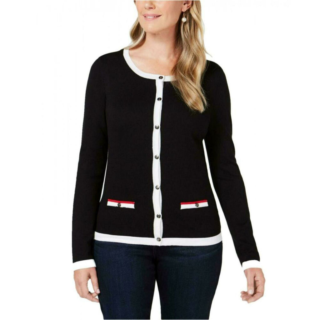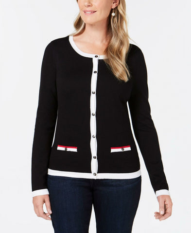 Get on board with the forever-chic nautical theme in Karen Scott's contrast-trim cardigan.