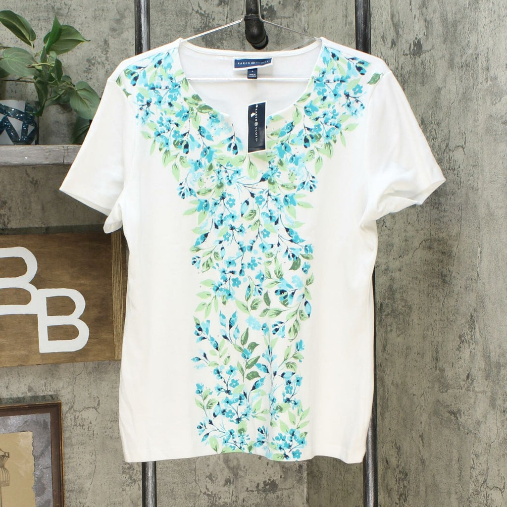 Femininity at its finest: this floral-print top will add an element of interest to many pieces: trousers, skirts, or jeans for the perfect casual or office wear look.