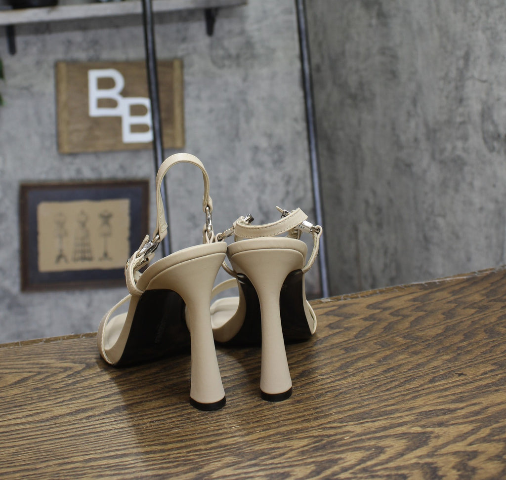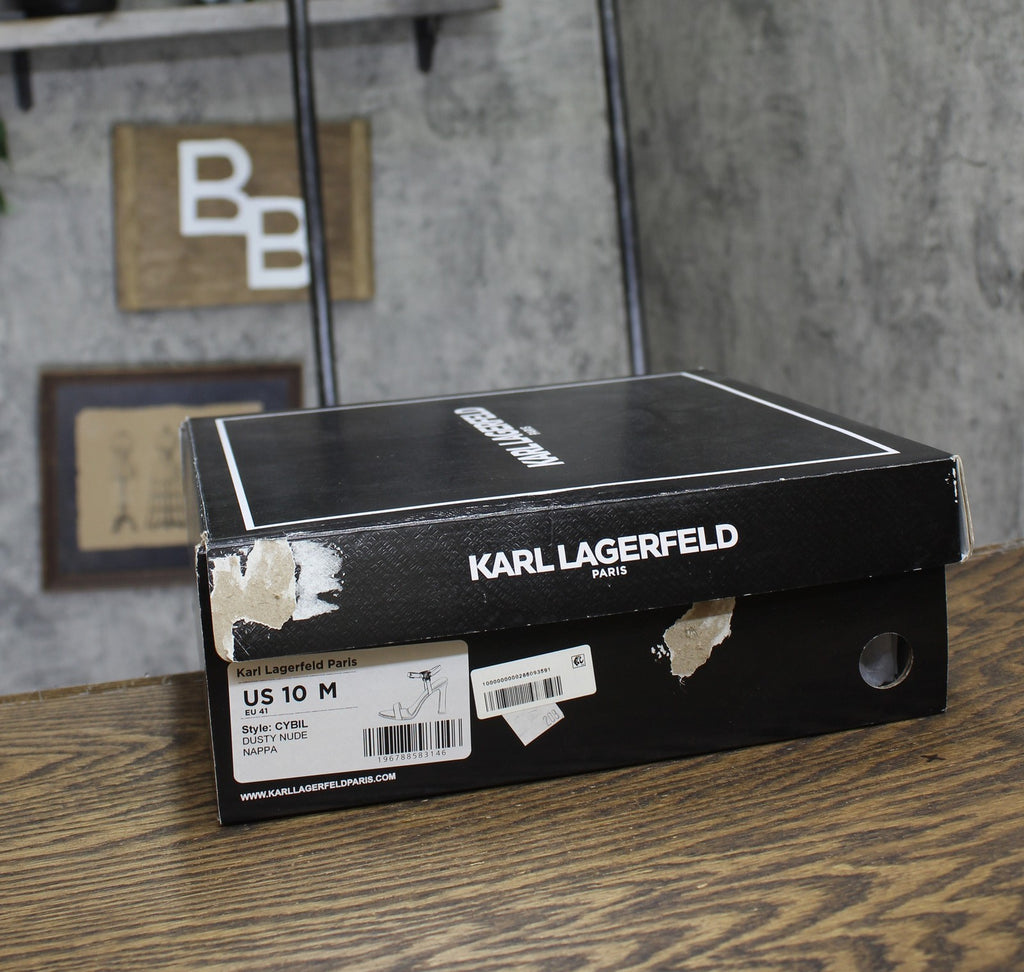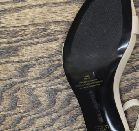 Simply shaped, asymmetric vamp straps with sculpted high heels, the Cybil sandals deliver an undeniably stylish look from KARL LAGERFELD PARIS. Features Sculpted architectural heel: 4" Square toe Adjustable buckle closure Asymmetric vamp strap Upper: leather, metal; lining: manmade Imported