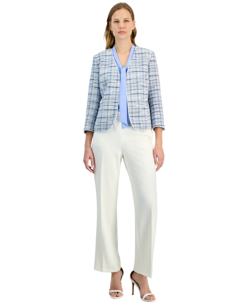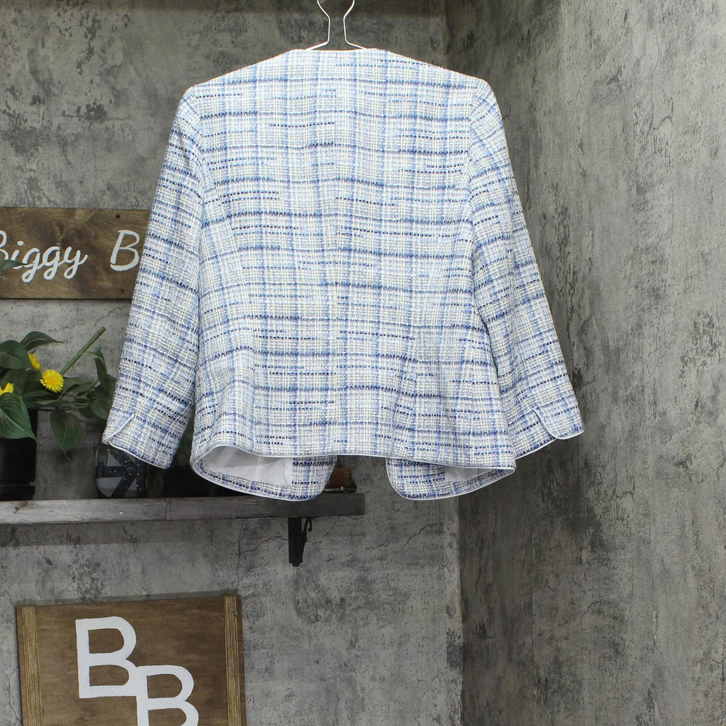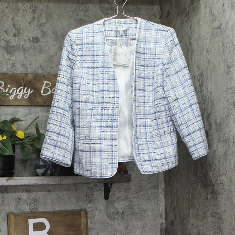 Kasper Tweed 3/4-Sleeve Open-Front Blazer Jacket California Sky Blue Multi 8