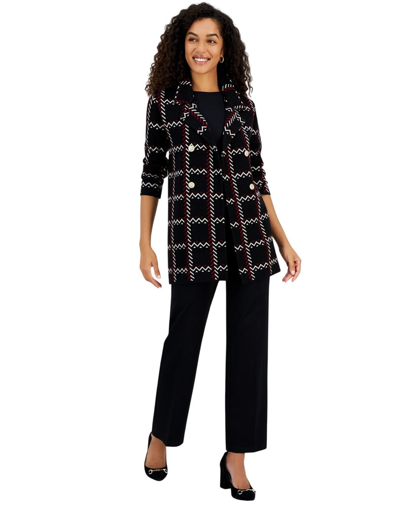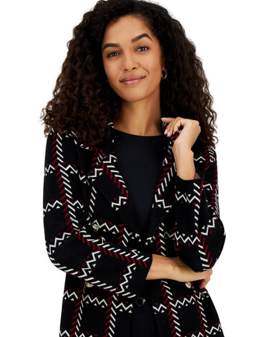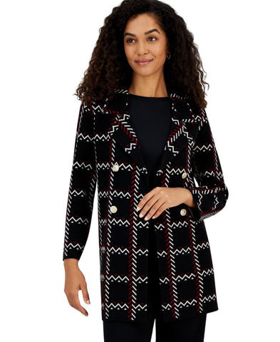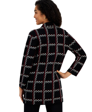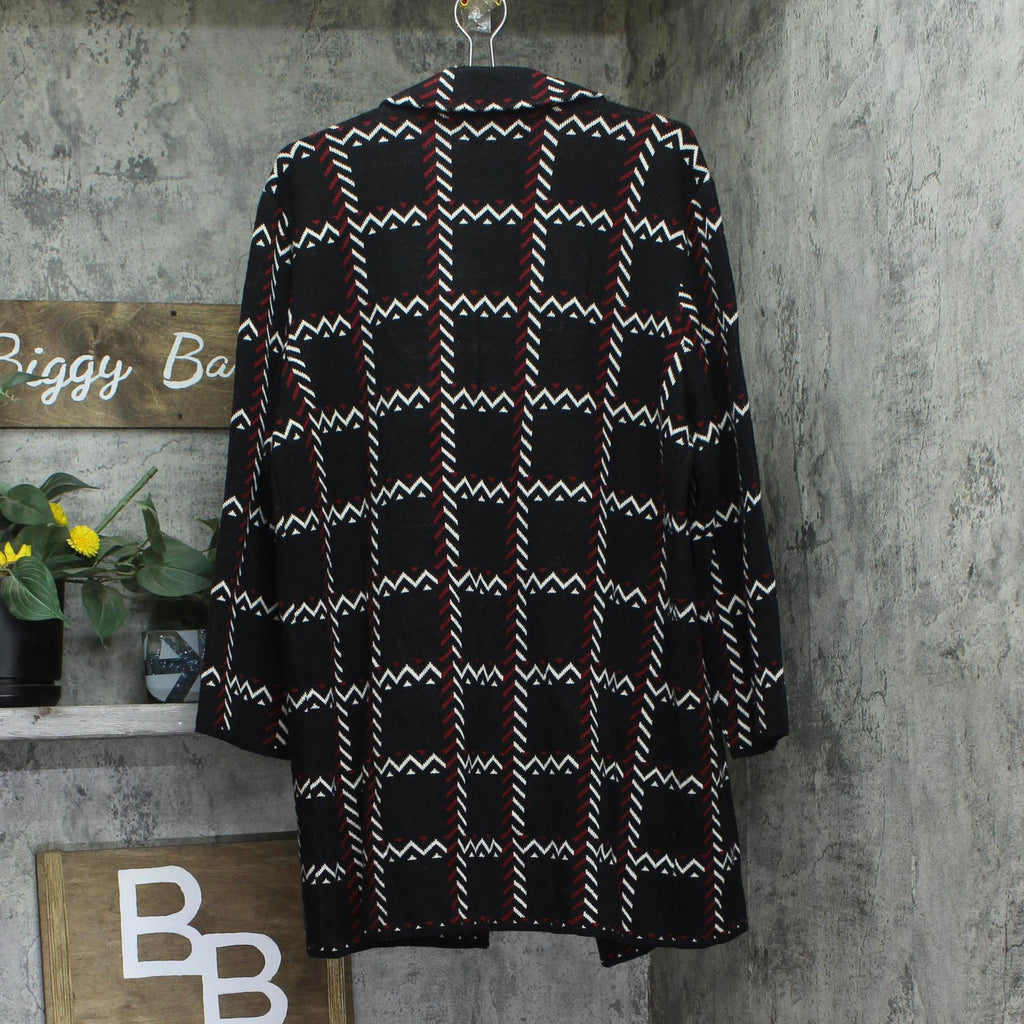 Kasper Womens Edge Notched Collar Faux Button Open Front Coatigan Black Multi XL