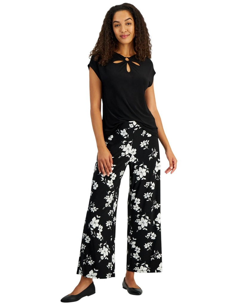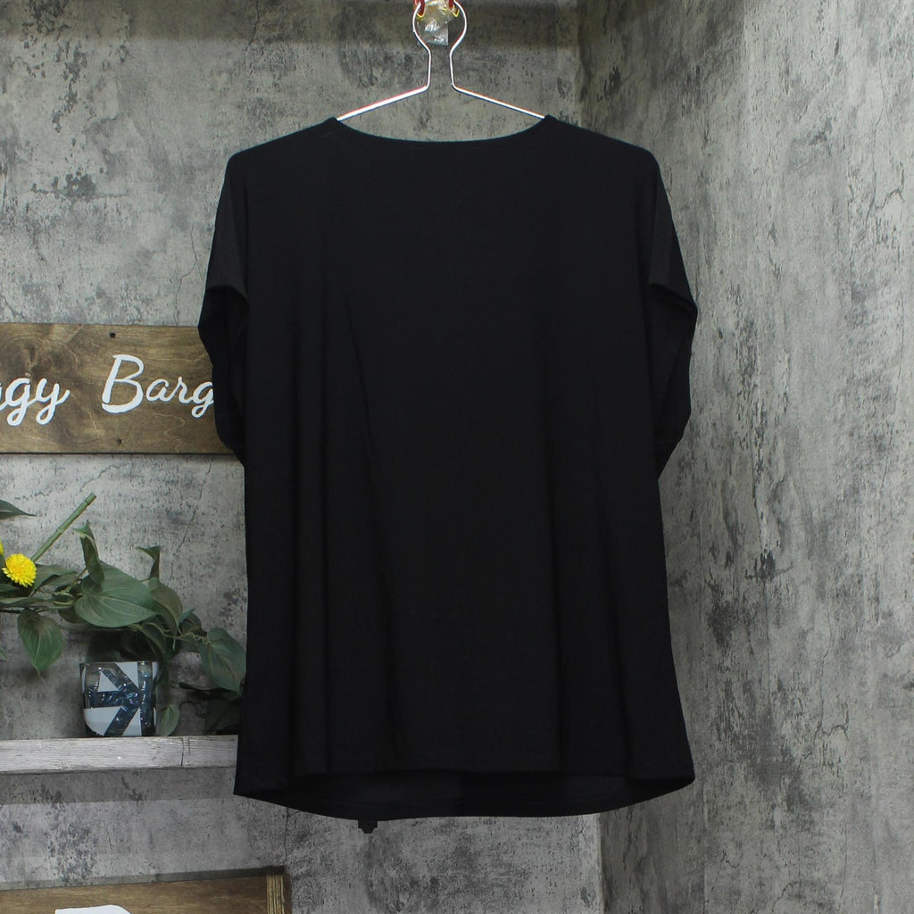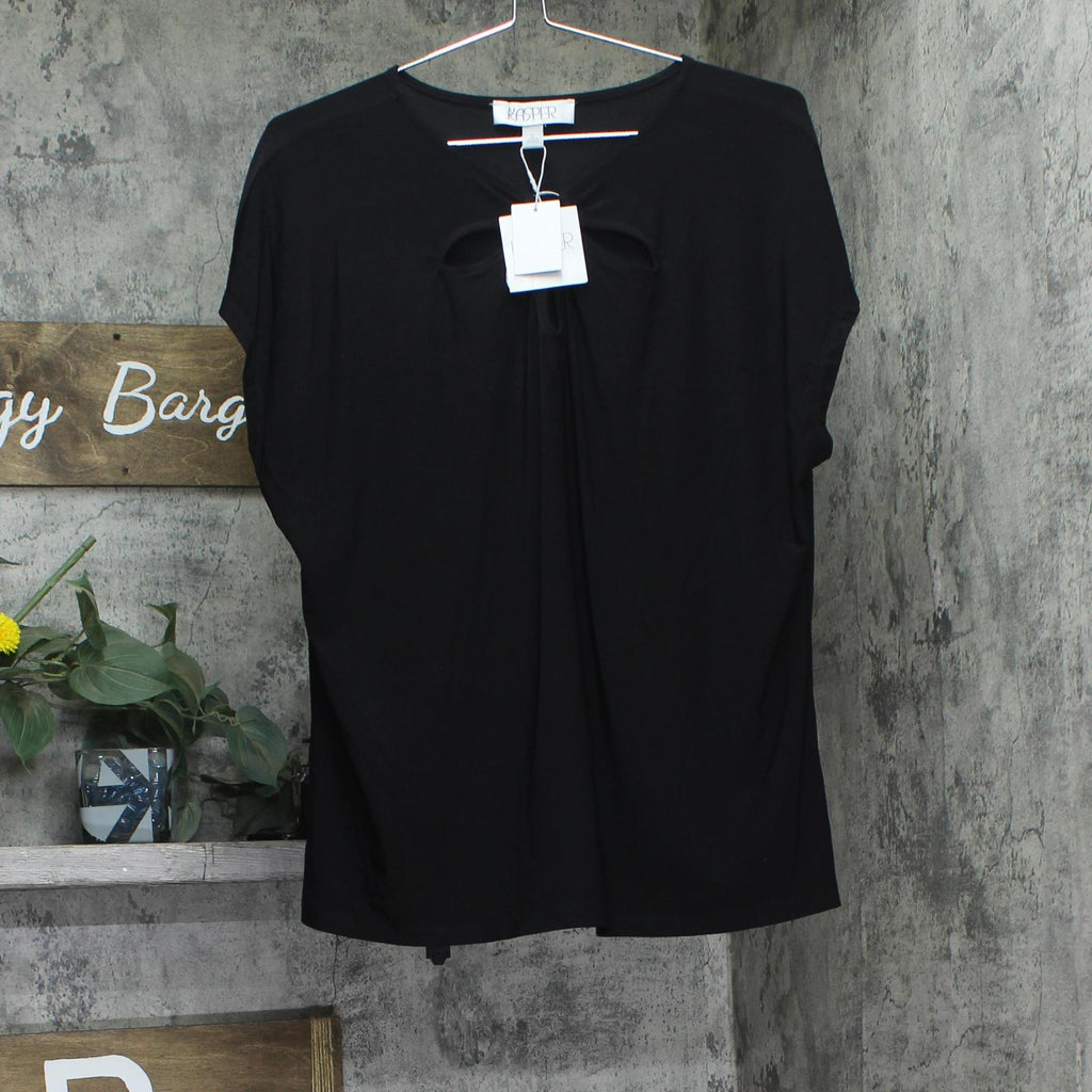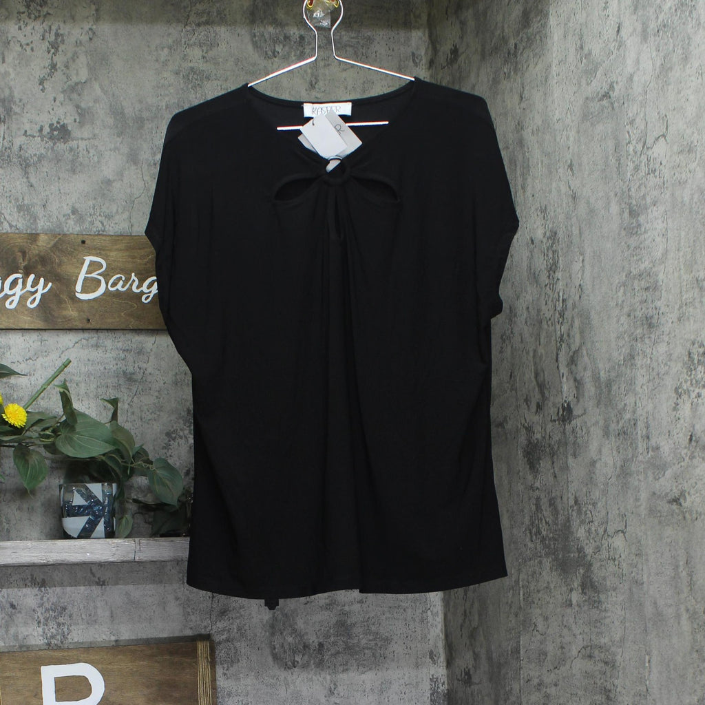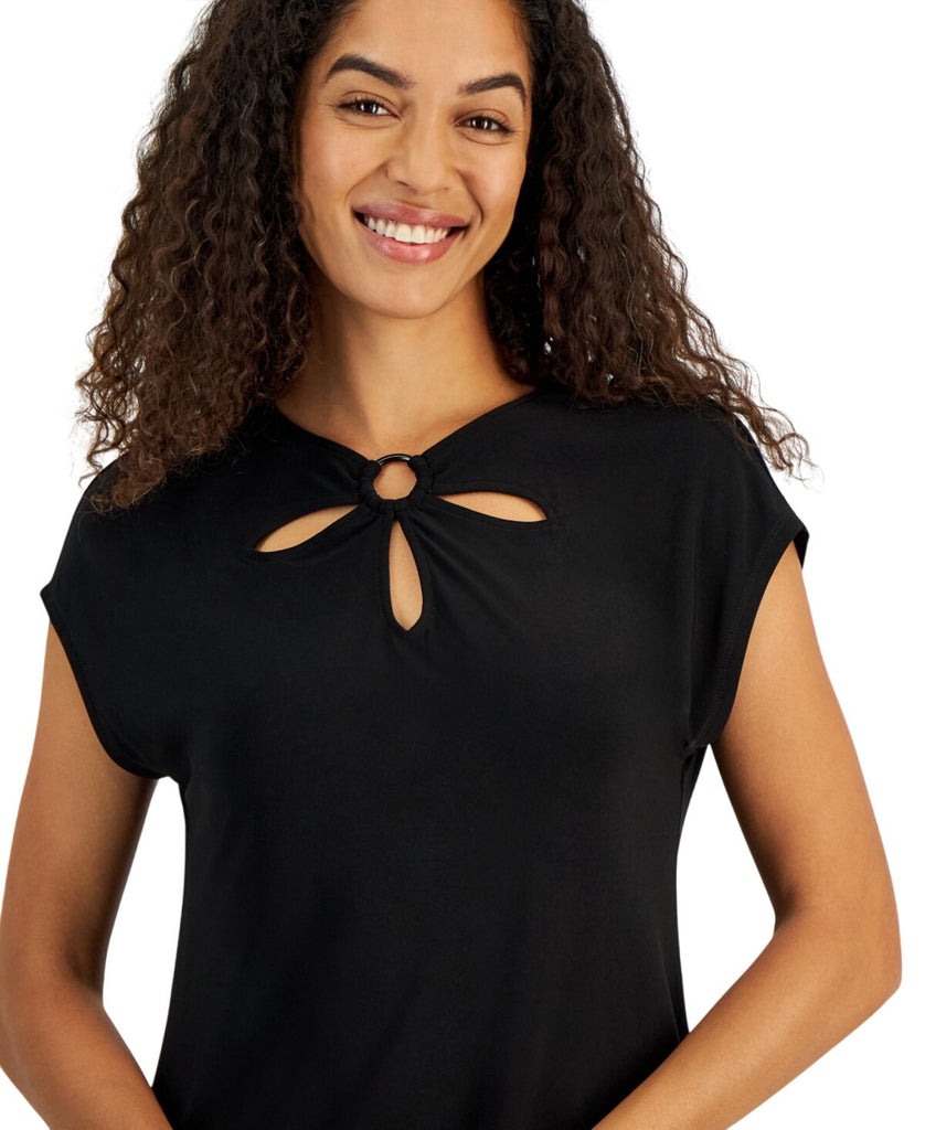 Kasper Womens Keyhole Ring Short-Sleeve Knit Shirt Top 10924137 Black XL