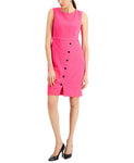 A tailored essential from Kasper, this sleeveless sheath dress features asymmetrical snaps at the front skirt.