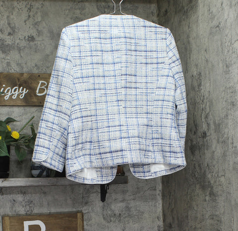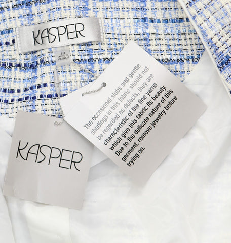 A staple for your weekday collection, this modern tweed blazer from Kasper features a collarless, open front design perfect for layering over your favorite blouses.