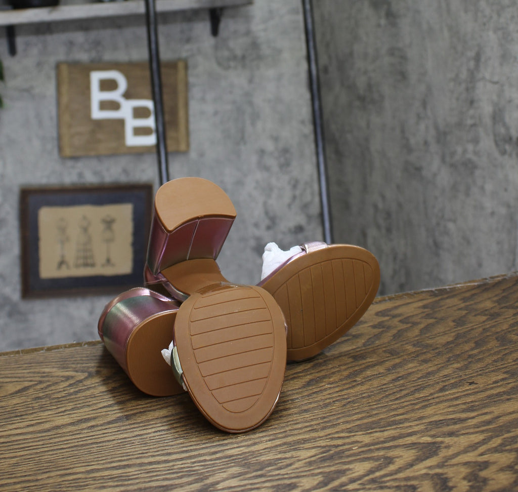 Features Fits true to size, order your normal size Open toe Buckled ankle strap 3.11" heel Leather or polyurethane upper Polyurethane lining, TPR sole Imported