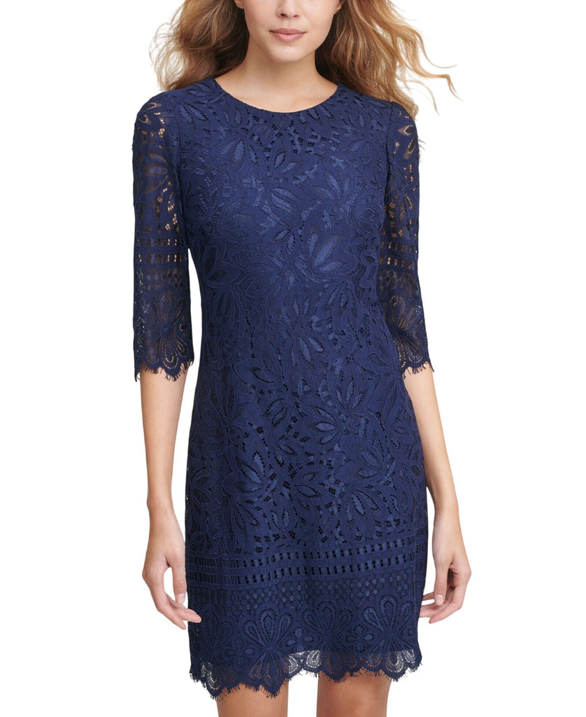 Kensie Womens Half Sleeve Lace Sheath Dress KDLN0805 Navy Blue 8