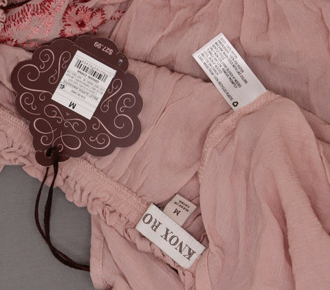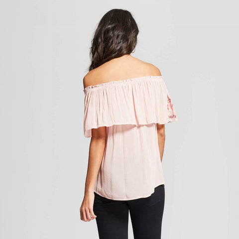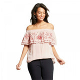 From tropical vacays to patio happy hours, you'll love the carefree style of the Floral-Print Short-Sleeve Embroidered Off-the-Shoulder Top from Knox Rose. A soft pink color and delicate floral detail makes for a light and wispy look.