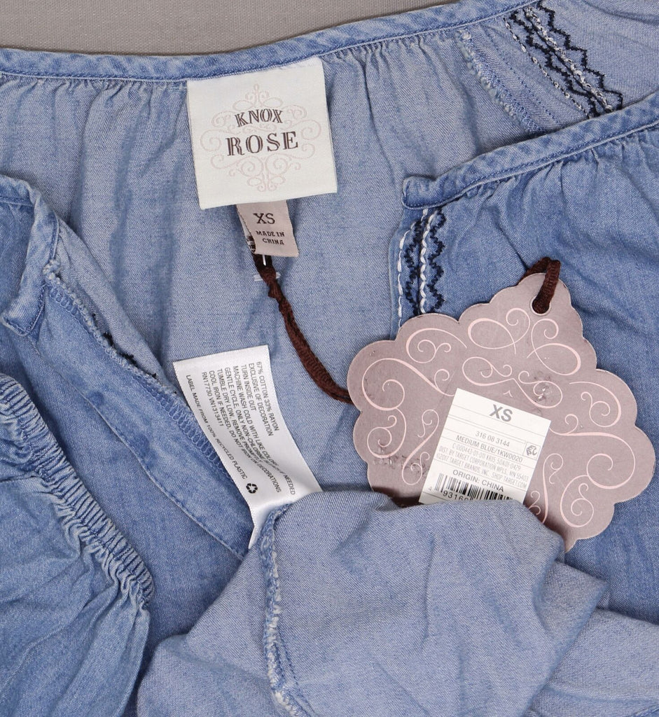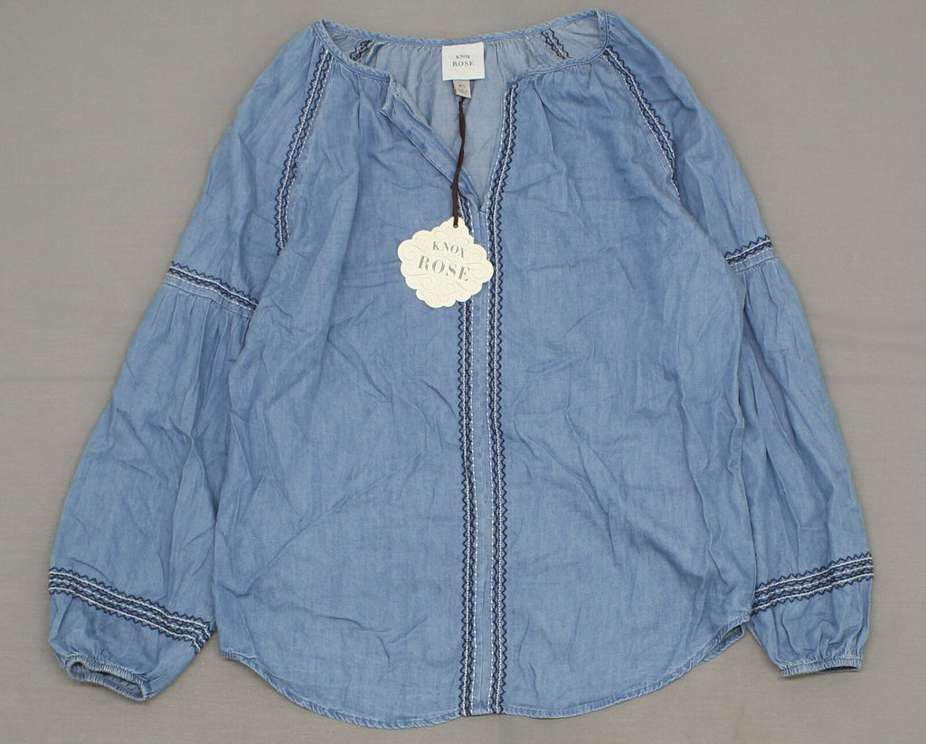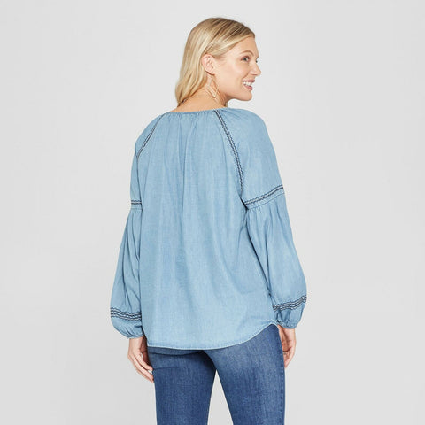 You'll be the picture of peace and love in this hippie-inspired Long-Sleeve Tencel Popover Top from Knox Rose. This cotton-blend, balloon-sleeve top is made of soft, lightweight fabric in a pretty blue shade. The relaxed fit and embroidered zigzag designs on the sleeves and front bring cool retro vibes to this long-sleeve peasant top, but the comfy fabric and long hem keep it versatile enough to style how you like by adding accessories. Pair it with dark skinny jeans and layered simple necklaces, or go full hippie in oversized hoop earrings and bell bottoms.