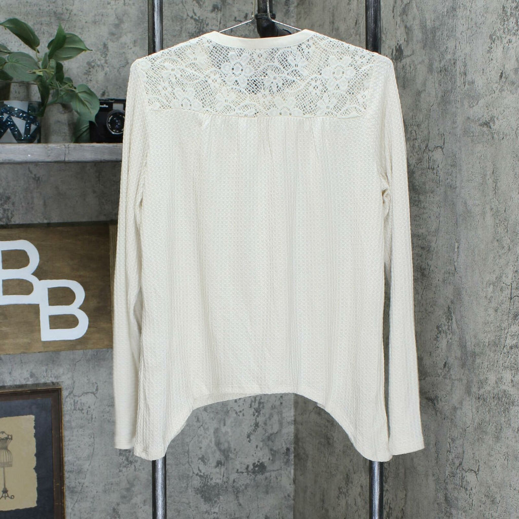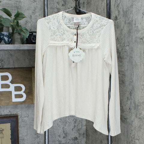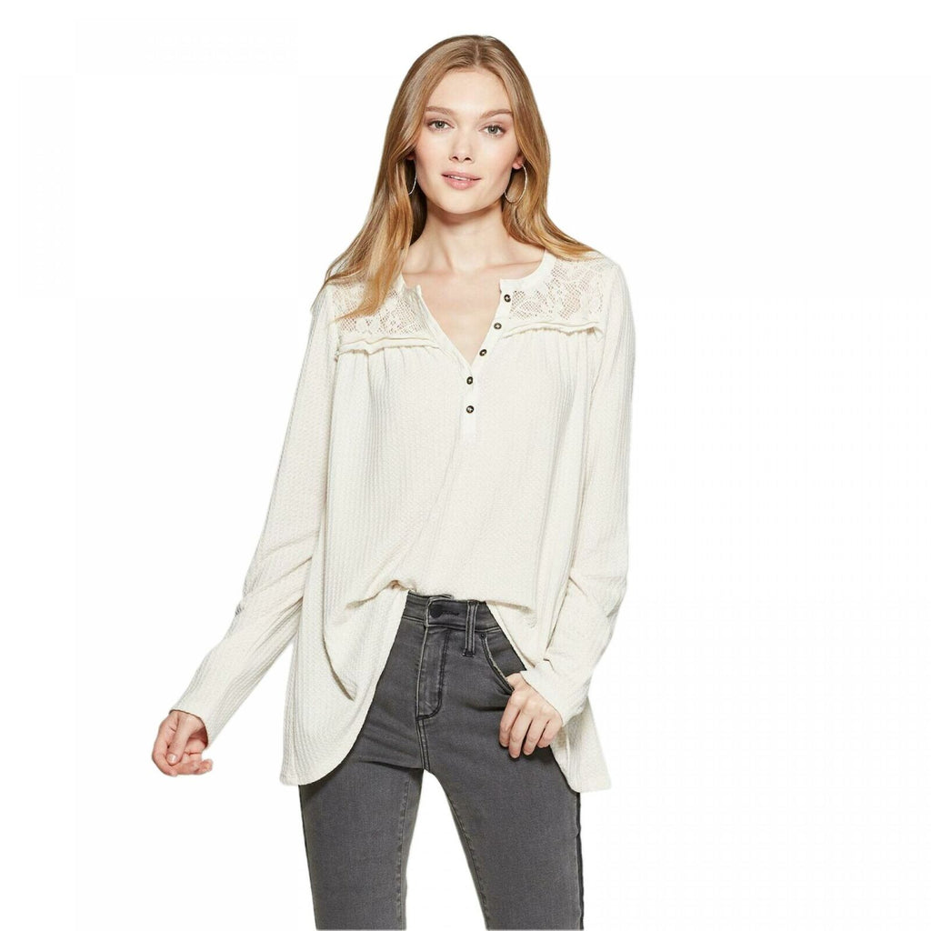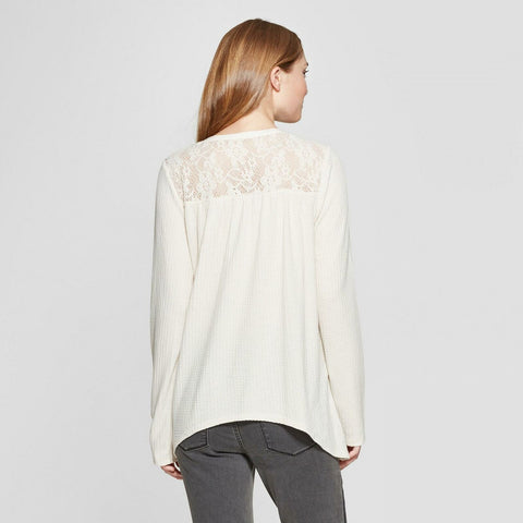 Whether you're layering to create your own unique look or just choosing a comfy henley tee for cozy ease, you'll love the Long-Sleeve Waffle-Knit Henley from Knox Rose. This lace henley top features a five-button closure for a neckline you can adjust to suit your style, and is designed with lace across the shoulders on front and back for added texture and sweet detail. Pair it with jeans or corduroys as a simple but sweet look, or layer it under a denim or olive jacket for extra warmth.