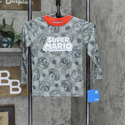 He'll love drifting off to dreamland in this 2-Piece Super Mario Jersey Pajama Set. Made from a soft jersey fabric, this printed pajama set offers a comfy feel and fit. The long-sleeve tee features an allover print of Mario and Luigi with other Super Mario prints on a gray checkered background. The accompanying red pajama shorts feature the Super Mario logo, and they're designed with a full elastic waistband to help him find a secure fit. Great as a set, he can also mix and match these pieces with his other to create an array of fun sleepwear options