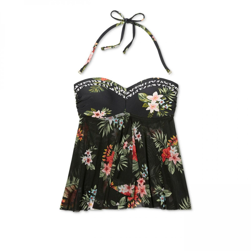 Take your beachside look to the next level with a Bandeau Flyaway Tankini Top from Kona Sol. This eye-catching floral tankini top features a bandeau bust with a sheer, flowing bodice, and it comes with a detachable halter strap for versatile style and a secure fit. Pair it with bottoms of your choice and a wide-brim sunhat for a comforatble, stylish look you'll love.