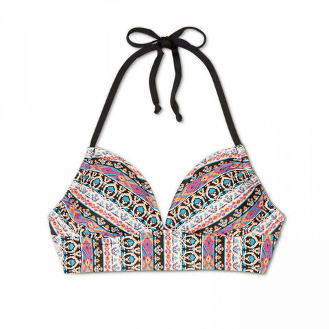 Hit the waterside in a new swim look with the Halter Bralette Bikini Top from Kona Sol . Featuring shades of pink, orange, peach, blue and black for contrast, this halter bikini top lends an eye-catching look you'll feel confident in. The top even has removable soft cups so you can customize your level of support and shaping.